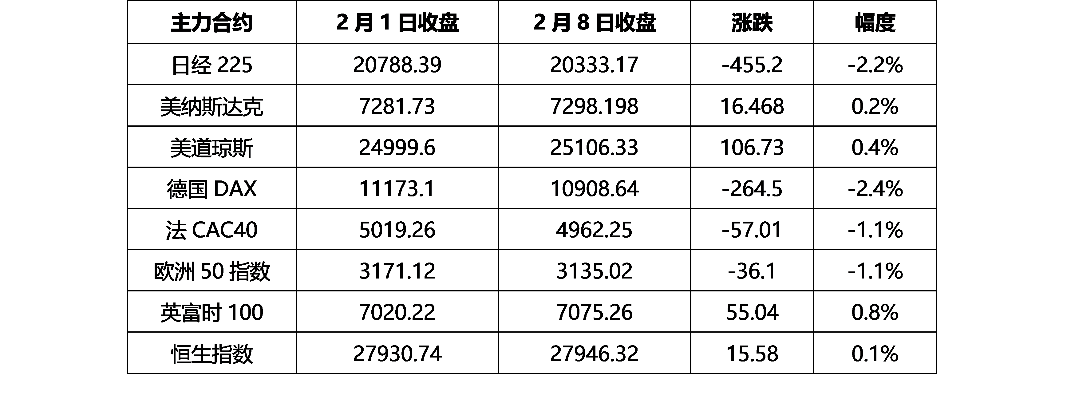春節(jié)期間全球主要股指變動(dòng)對(duì)比