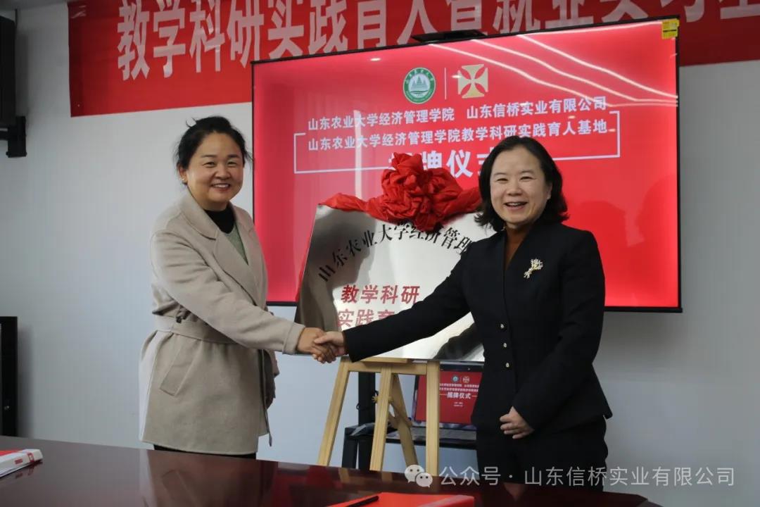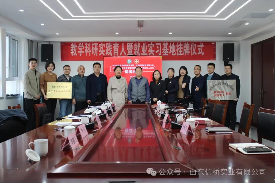 11.28日,山東農(nóng)業(yè)大學經(jīng)管學院與山東信橋實業(yè)有限公司在信橋公司舉行了教學科研實踐育人暨就業(yè)實習基地掛牌儀式。