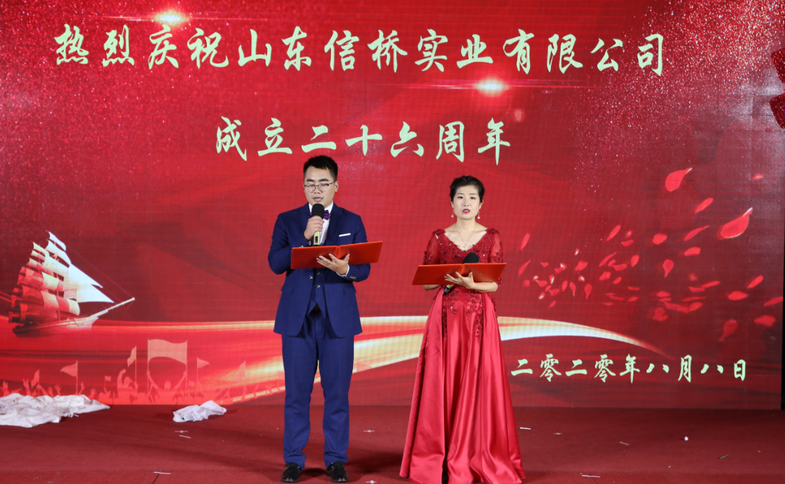 On August 8,2020, the twenty-six th anniversary of Shandong Xinqiao Industrial Co. , Ltd. was held in grand style at the Emperor Garden Hotel in Tai'an. Leaders, colleagues and friends, old and new, who have shown great love to Nobubashi for twenty-six long years, are gathered here with all the employees who have worked hard for the company, share the glory and happiness that belong to everyone! The year twenty-six of Sinbashi is the year twenty-six and the year twenty-six of development.